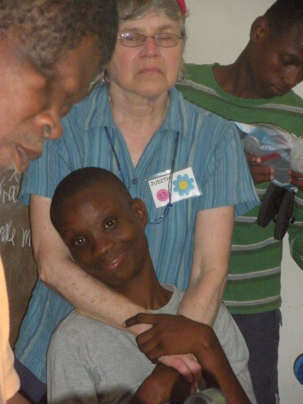 Thursday: I help children at St. Vincent's take off their school shoes and socks so their feet can be examined. Many of the shoes are too tight so it is a challenge to get them off and then back on again. I want to find shoes that fit and worry about feet trying to grow in such tight shoes. Then I get to play with the severely disabled children again. They are not ambulatory or are wheelchair bound and have few language skills. Mixed in with them are some of the younger deaf children, who maybe are supposed to be somewhere else but are here in the dormitory taking special care of the disabled. There are also some blind children. All seem excited to see me and to play and color and sign and touch. I am joyfully exhausted after a few hours, but those few hours have blessed me forever.